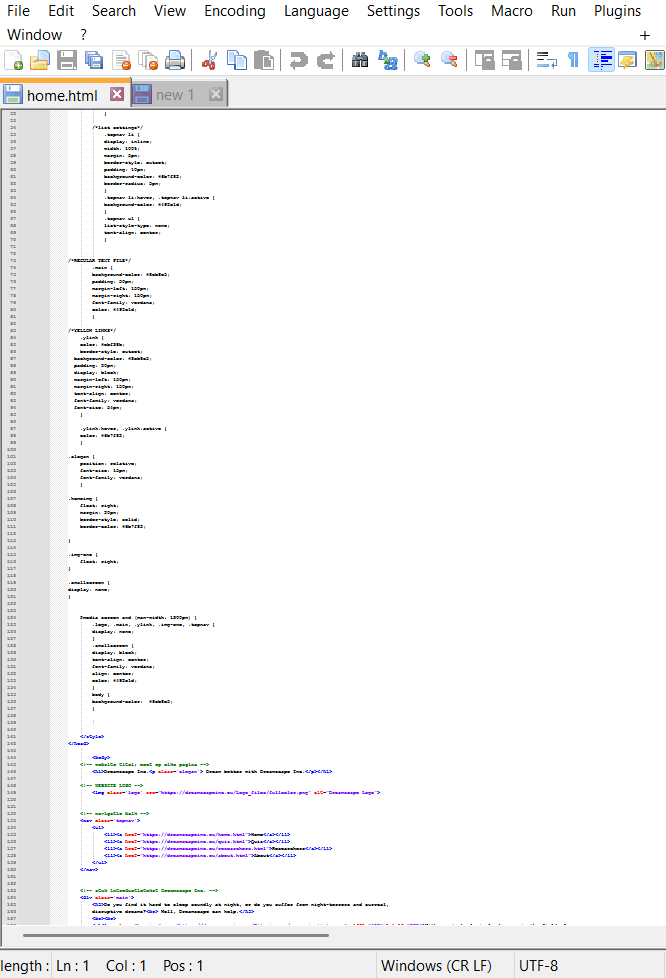 The site (currently still online, you can find it here dreamscapeinc.eu) was coded like this; every page was written by hand. It was a lot of fun to do and I continued coding in my free time after! Really glad I decided to take a gamble and try to do this myself.